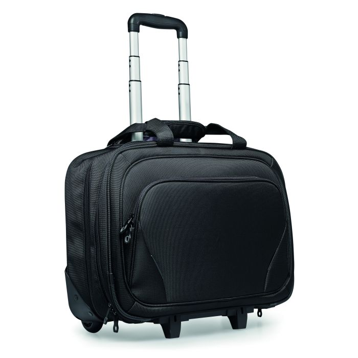 Trolley business cu buzunar pentru laptop de 17 inch, buzunar pentru tabletă de 10 inch și numeroase compartimente. Poliester 1680D.
