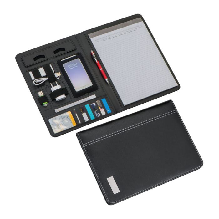 Mapă A4, fabricată din imitaţie de piele de înaltă calitate cu buzunar, suport pentru cărţi de vizită, stilouri si smartphone şi notes cu calendar și pagini liniate.
