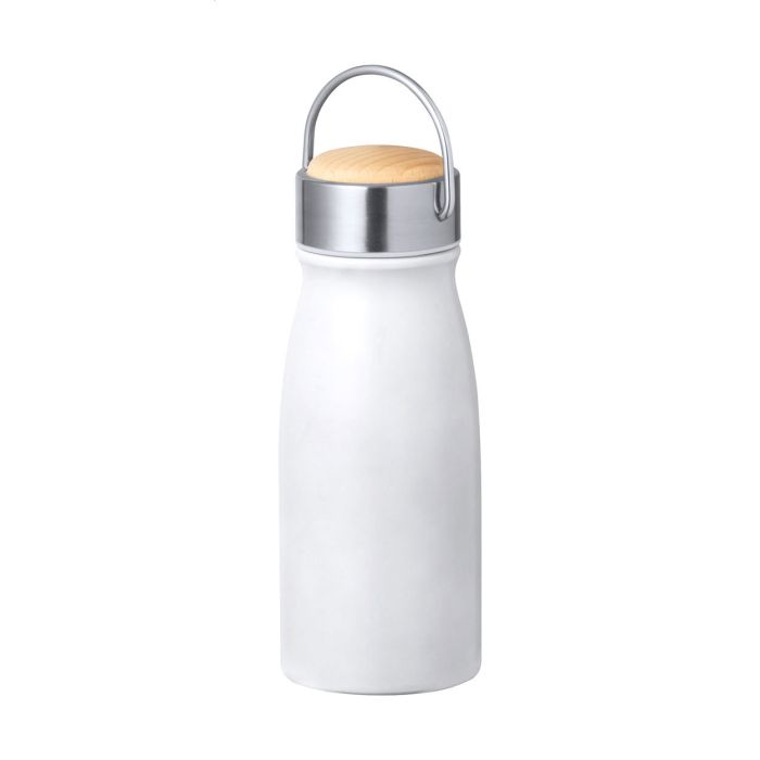Termos din oțel inoxidabil reciclat, cu perete dublu, cu capac de transport din lemn, 350 ml.