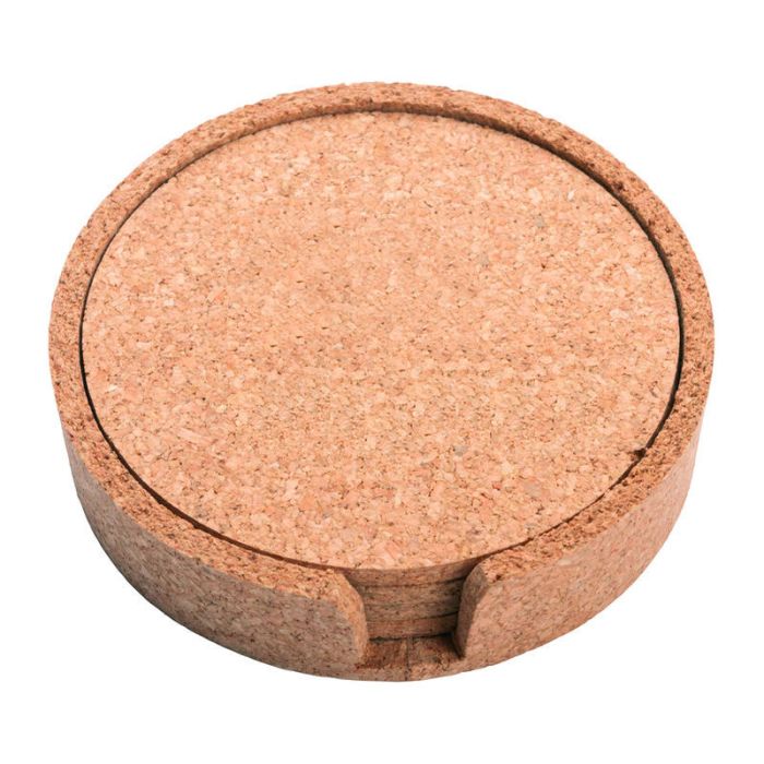 Set of 4 Vanilla Season cork coasters in a cork stand. Packed in a Vanilla Season gift box.
