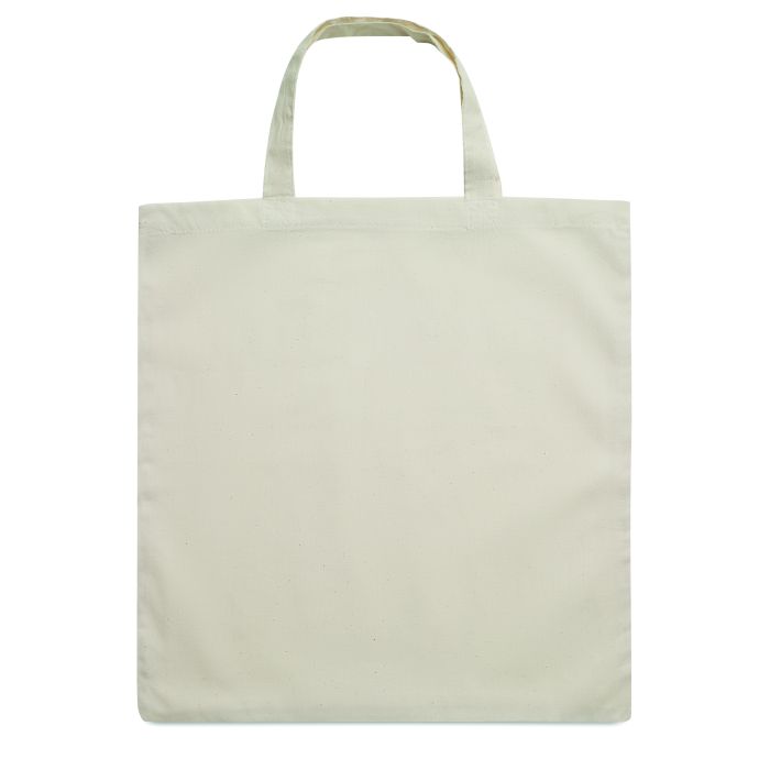 Sacoșă de cumpărături din bumbac cu mânere scurte. 140 gr/m². Acest produs este certificat OEKO-TEX® STANDARD 100.