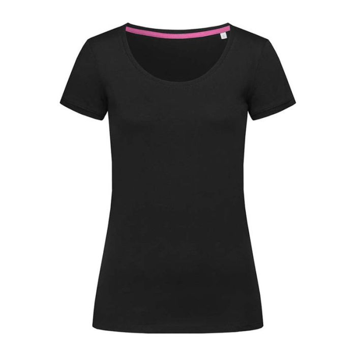 Modern T-shirt for women, with fashionable length and wide neck drop made of extra smooth combed ring-spun cotton.
