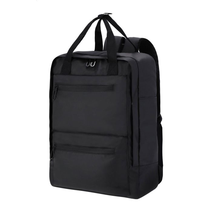 Rucsac din piele PU, soft, cu compartiment cu fermoar și buzunare frontale, compartiment căptușit pentru laptop (15") și tabletă (10"), spate și bretele căptușite.