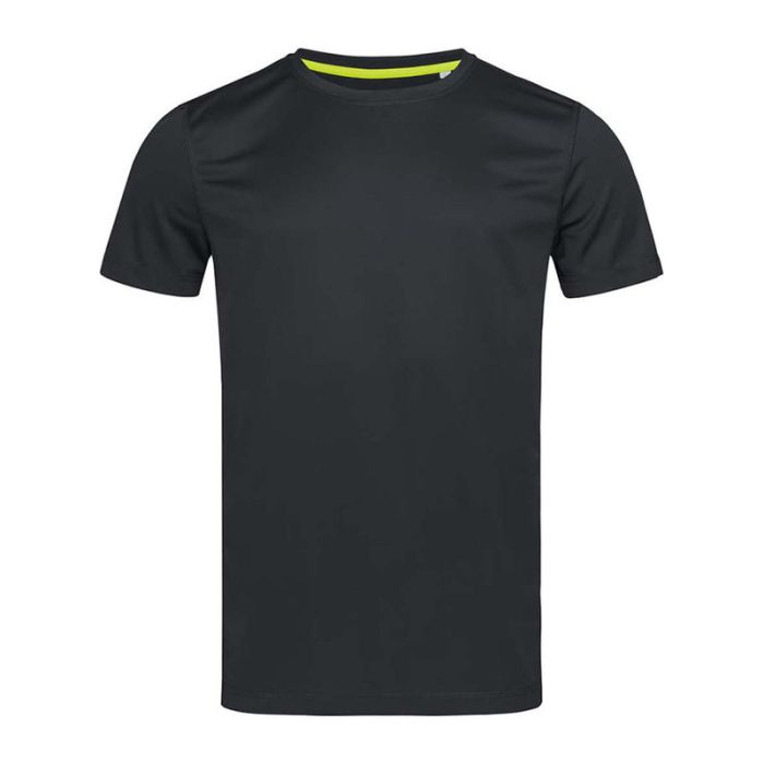 Modern and stretchy sports T-shirt for men made of quick-drying, breathable mesh-material. Contrast neck tape, decorative flatlock seams and excellent freedom of movement.