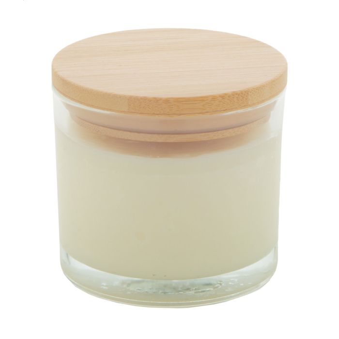 Lumânare de ceară, pe baza de plante, cu parfum de vanilie, în suport de sticlă, cu capac din bambus. Cu 95 de grame de ceară. În cutie de hârtie kraft.