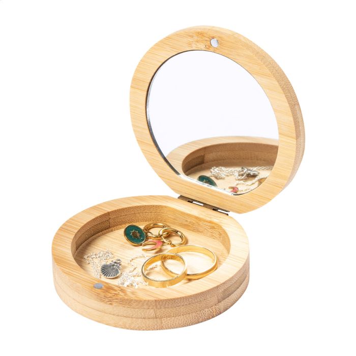 Cutie de bijuterii, din bambus, cu oglindă.