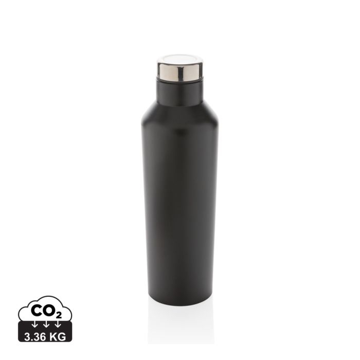 A beautiful contemporary vacuum stainless steel bottle that makes a statement. With its unique design this bottle is a definite asset to your essentials. Made of high quality stainless steel with leakproof screw on lid. It keeps whatever you fancy cold for up to 15 hours or hot for up to 5 hours. BPA free.