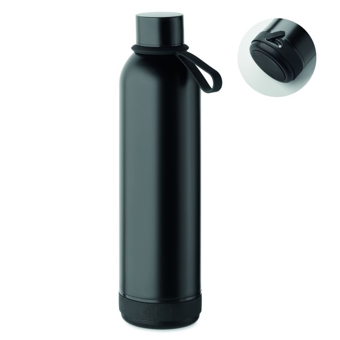 Sticlă termo cu perete dublu din oțel inoxidabil reciclat (90% oțel inoxidabil reciclat și 10% oțel inoxidabil) și mâner din silicon - difuzor wireless detașabil de 3 W. Capacitate: 500 ml. are o baterie încorporată: 500 mAh. Îndepărtați difuzorul pentru curățare.
