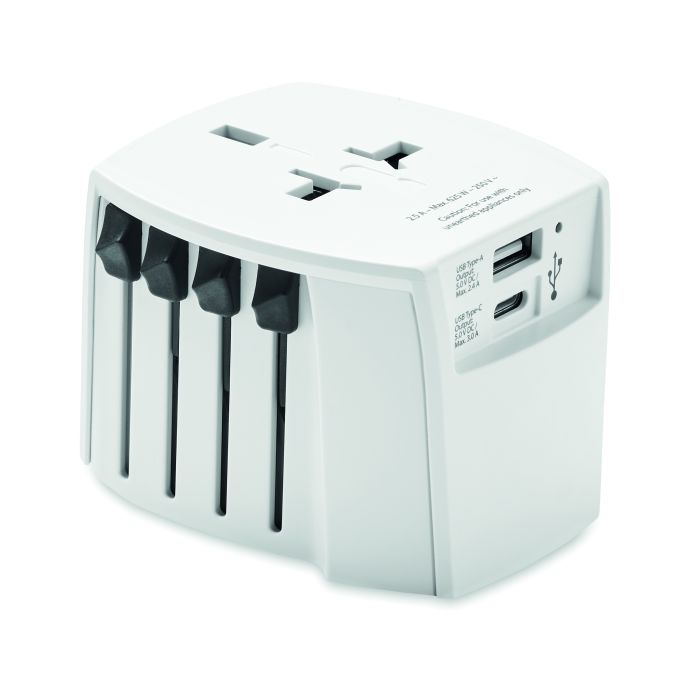 SKROSS® MUV USB A/C. Adaptor universal pentru călătorii cu porturi 15W USB Tip-C și 12W Tip-A.