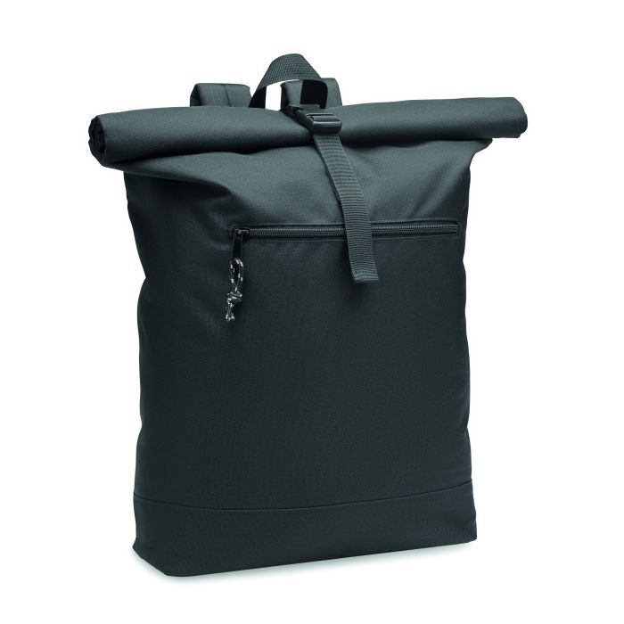 Rucsac rolltop din poliester 600D RPET cu spate căptușit și întăritură în partea inferioară. Buzunar frontal cu fermoar. Căptușeala este din RPET 210D.