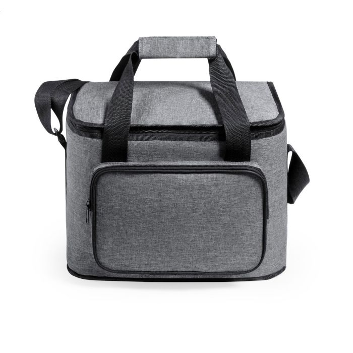 Geantă de răcire RPET cu căptușeală PEVA, compartimente cu fermoar, mânere cu velcro și curea de umăr reglabilă. Cu etichetă distinctă RPET. Poliester 600D RPET.