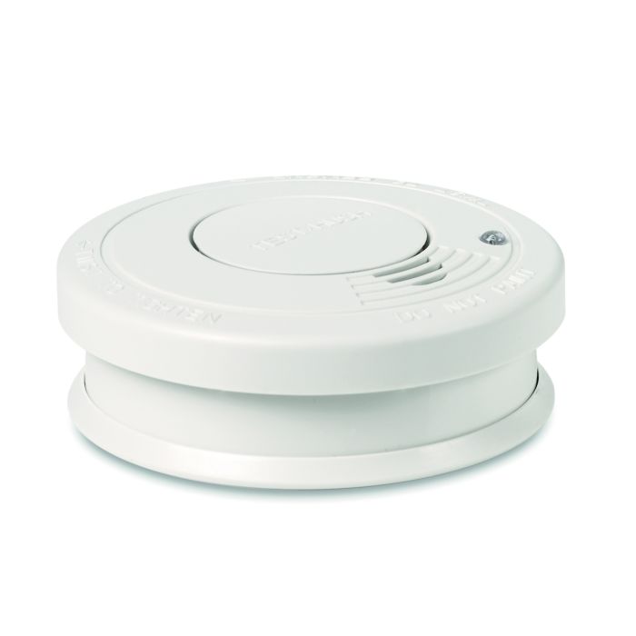 Detector de fum în carcasă din plastic, cu lumină roşie care semnalizează că este în funcţiune. Include 2 şuruburi pentru instalare uşoară şi 1baterie de 9 volţi.
