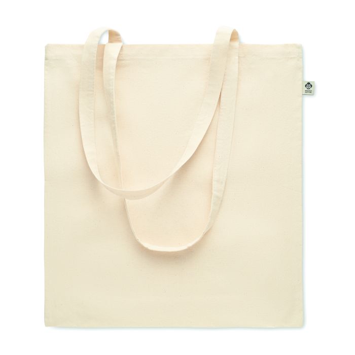 Sacoșă de cumpărături din bumbac organic cu mânere lungi. 180 gr/m².