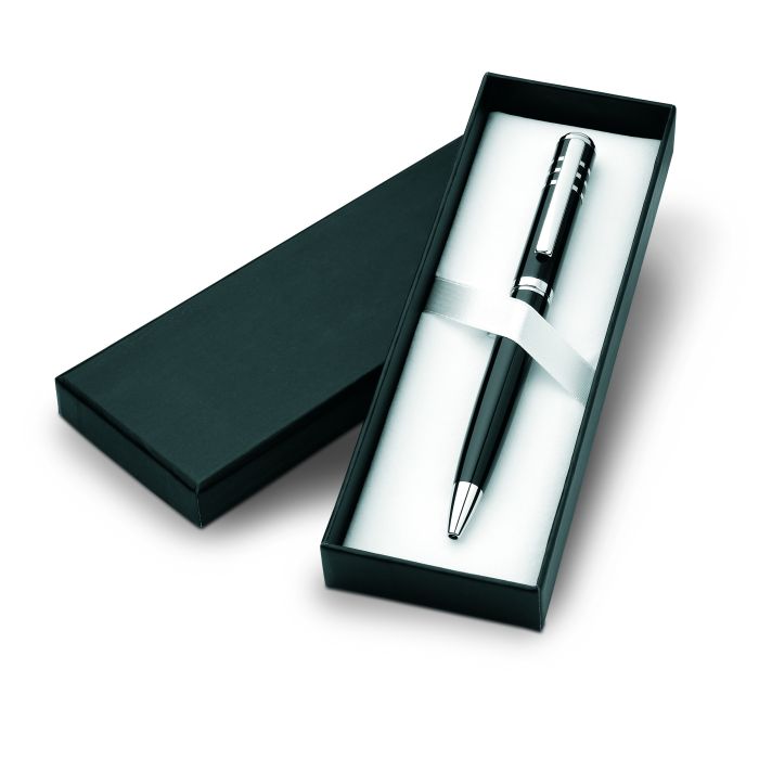 Pix metalic cu finisare lăcuită lucioasă. În cutie de cadou, din carton. Mină neagră.