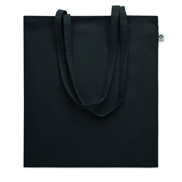 Sacosa de cumpărături din bumbac organic cu mânere lungi. 180 gr/m². Produsă în conformitate cu standardul certificat pentru utilizarea substanțelor nocive în textile. Acest produs este certificat OEKO-TEX® STANDARD 100.