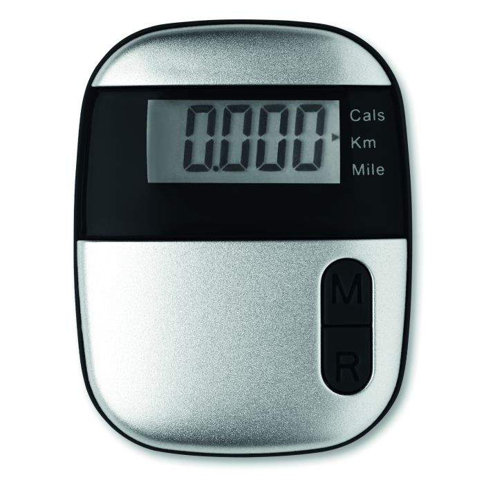 Pedometru cu clip de prindere în carcasă din plastic ABS. Măsoară numărul de paşi, distanţa ( mile sau kilometri ) şi caloriile. Include 1 baterie de tip celulă.
