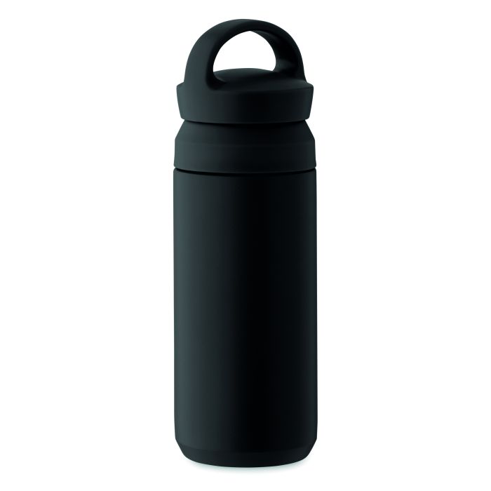 Sticlă termo cu perete dublu, din oțel inoxidabil reciclat (90% oțel inoxidabil reciclat și 10% oțel inoxidabil), cu capac dublu din PP, deschidere dublă pentru o curățare ușoară. Capacitate: 320 ml.
