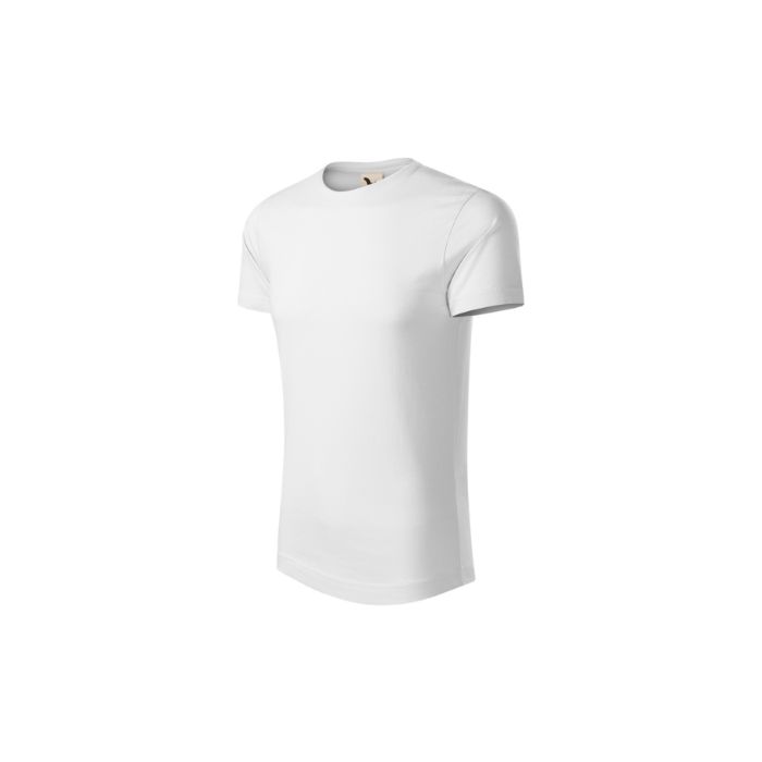 bumbac obținut din culturi ecologice, cusături laterale, tivul gulerului este din același material de bază, cu 5% adaos de elastan, este aplicată o bandă de întărire de la umăr la umăr, marginea inferioară este curbată, mai multe informații despre Standardul GOTS