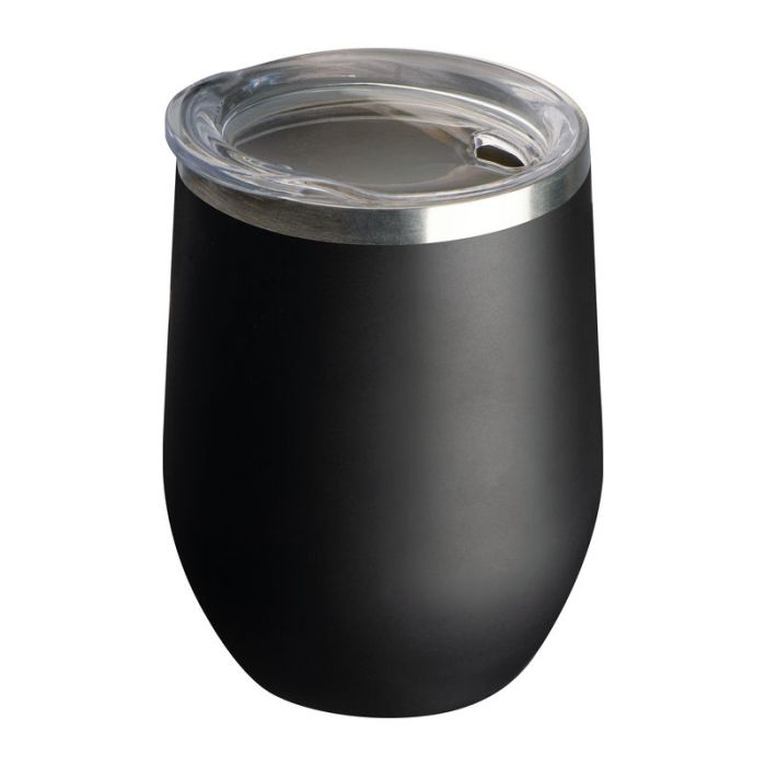 Pahar cu perete dublu vidat, din oţel inoxidabil, cu o capacitate de 300 ml şi capac transparent.