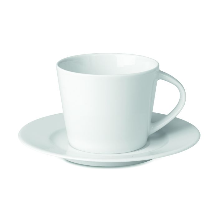 Cană conică din porțelan pentru cappuccino cu farfurioară. Capacitate cană: 160 ml. Ambalare vrac.
