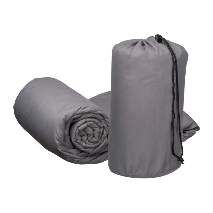 Pătură de călătorie CrisMa (120 x 200 cm, 90 g/m2) din ţesătură confortabilă din microfibră, de culoare antracit, cu părţile laterale gri deschis și cusături matlasate. Foarte călduroasă datorită căptușelii din interior. Pătura este ambalată într-o husă asortată.