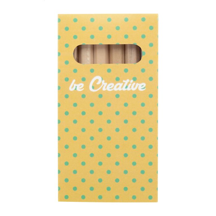 6 buc creioane colorate din lemn în cutie de hârtie imprimată full colour. Prețul include imprimarea digitală. Cantitate minimă de comandă: 100 buc.