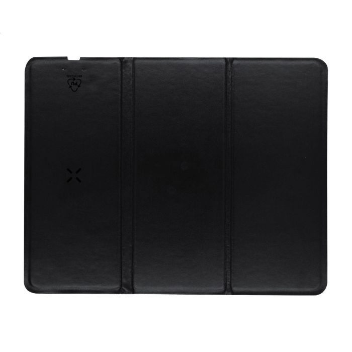 Mousepad pliabil, din piele PU reciclată, cu încărcător wireless încorporat (10W) și funcții de suport pentru telefonul mobil. Cu bază anti-alunecare din catifea. Inclusiv cablu de încărcare USB.