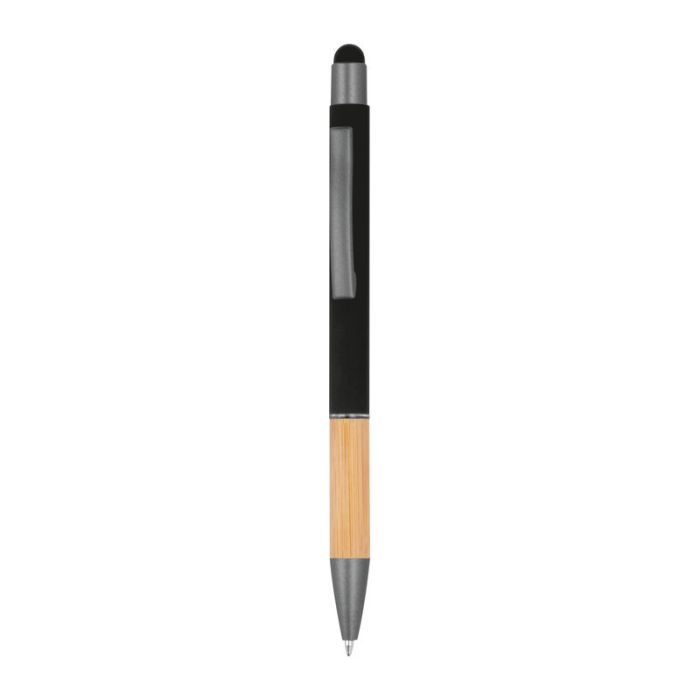 Pix din aluminiu cu mină cu cerneală albastră, funcţie touch, aplicaţii mate, argintii și zona de grip din bambus.