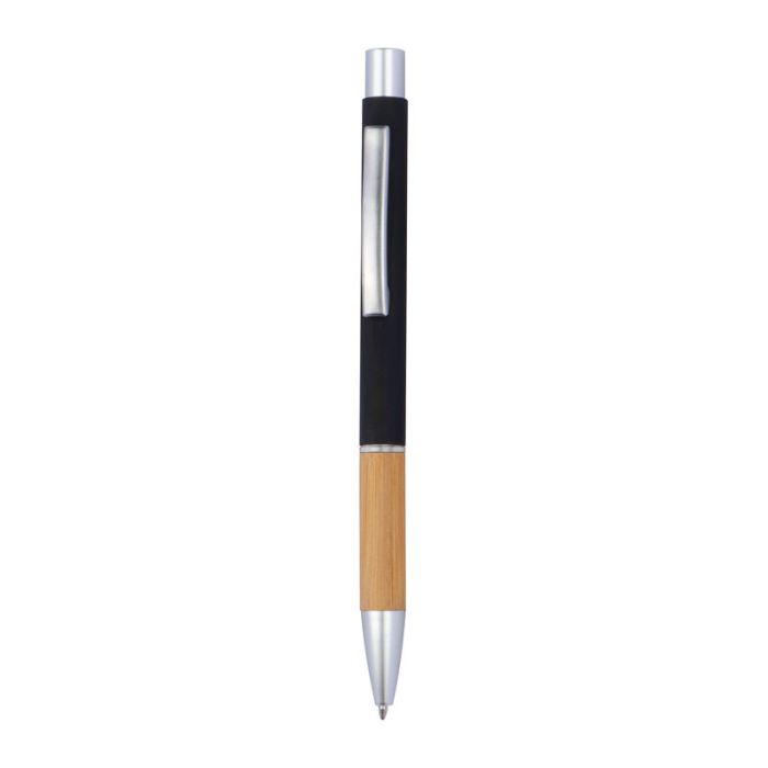 Pix retractabil din aluminiu cu o zona de prindere din bambus și mină albastră.