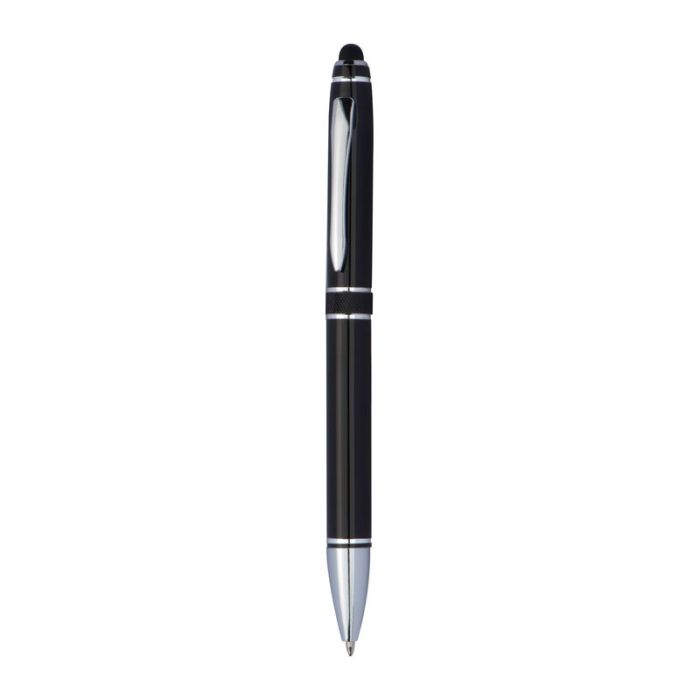 Pix de înaltă calitate din aluminiu cu funcţie de răsucire, cu mină cu cerneală albastră, aplicaţii argintii și funcţie touch într-un etui ecologic.