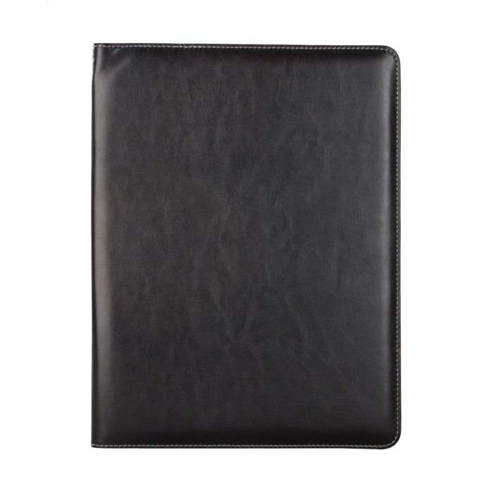 Mapă documente A4 din înlocuitor piele, blocnotes cu 20 file dictando, cu pix și suport pentru cărți de vizită.