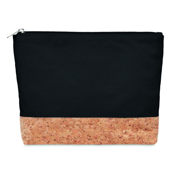 Geantă pentru cosmetice din bumbac, cu plută în partea inferioară. 220 gr / mp. Pluta este un material natural, având în vedere structura și suprafața poroasă, printul pe anumite produse poate fi diferită.