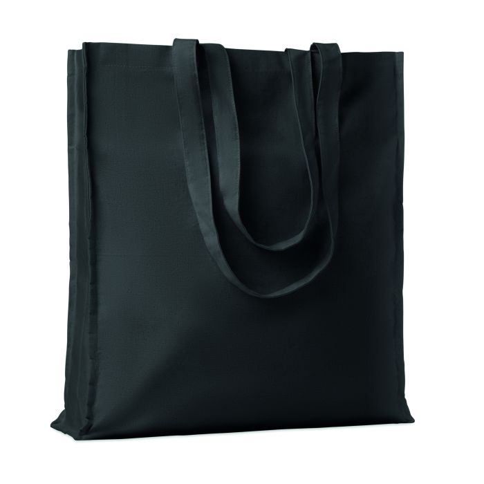Sacoșă de cumpărături din bumbac, cu mânere lungi și clini.140 gr/m². Acest produs este certificat OEKO-TEX® STANDARD 100.