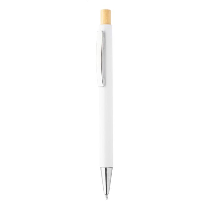 Pix din plastic ABS reciclat, cu buton din bambus și clemă metalică. Cu mină albastră.