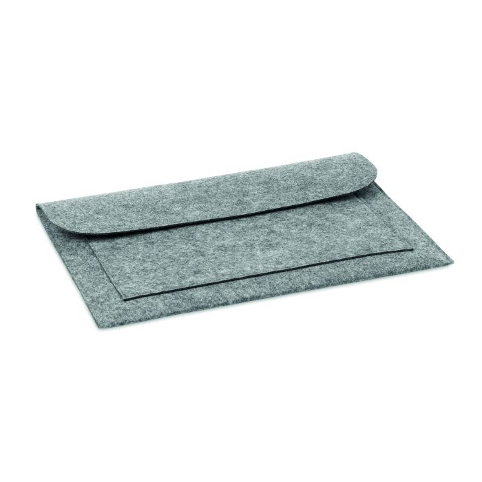 Geantă pentru documente sau husă pentru laptop de 15 inchi din pâslă de RPET, grosime de 2 mm, cu buzunar frontal și cârlig pentru închidere cu buclă.