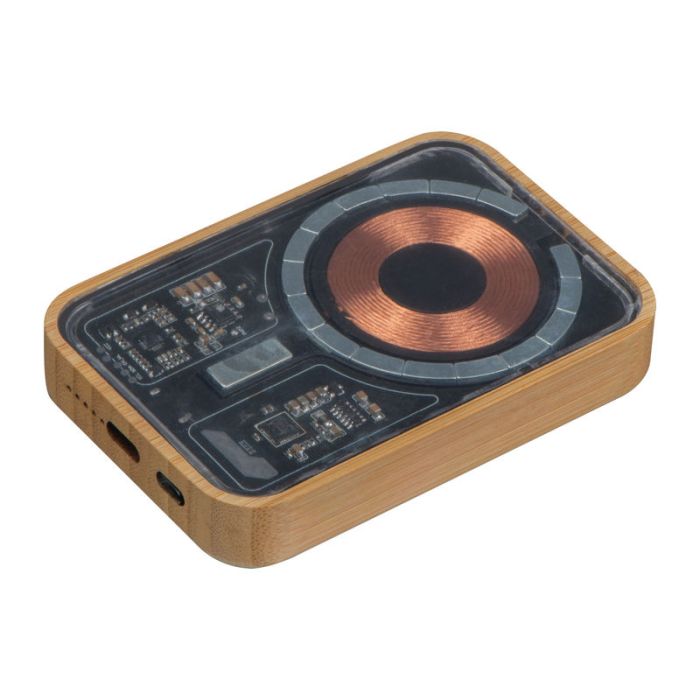 Magsafe® din bambus și faţă transparentă cu o putere de 5.000 mAh pentru încărcare wireless de până la 10 Watt. Datorită magnetului integrat, încărcătorul se fixează pe Iphone® și asigură o încărcare rapidă și fără fir. Compatibil cu Iphone® 12 și versiunile ulterioare, poate fi utilizat ca încărcător wireless pentru alte modele cu standard QI.