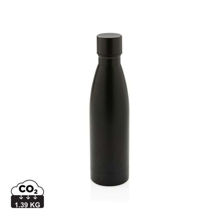 This RCS Recycled stainless steel vacuum bottle is designed for long-lasting enjoyment of your drinks! The double-wall recycled stainless steel vacuum construction keeps beverages chilled for up to15 hours or warm for up to 5 hours. This bottle fits most standard car cup holders so you can bring it with you anywhere. Made with RCS (Recycled Claim Standard) certified recycled materials. RCS certification ensures a completely certified supply chain of the recycled materials. Total recycled content: 93% based on total item weight. BPA free. Capacity 500ml. Including FSC®-certified kraft packaging.