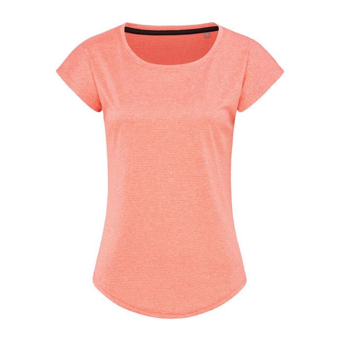 Eco-friendly from recycled material. Modern with a heathered look made from ca. 4 bottles. Especially flattering shape for ladies with overcut sleeves and a rounded hem.