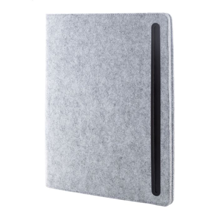 Dosar pentru documente de dimensiune A5, din fetru RPET, cu buzunare de organizare frontale și multiple interioare. Cu blocnotes cu 20 de foi dictando din hârtie reciclată.