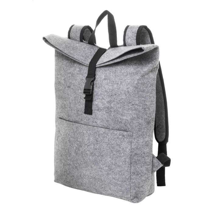 Rucsac rolltop, din fetru RPET, cu compartiment principal cu inchidere cu cataramă și buzunar frontal cu fermoar, compartiment pentru laptop (15") și bretele căptușite. Cu etichetă distinctă RPET.