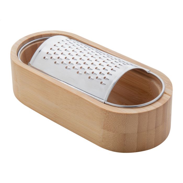 Răzătoare de brânză din oțel inoxidabil cu tavă din bambus.