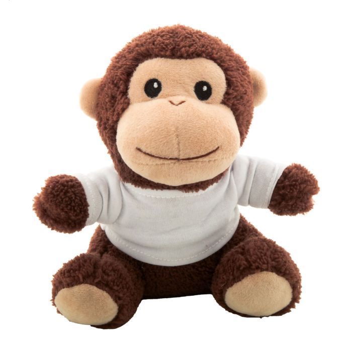 Maimuţă din pluș RPET, cu tricou imprimabil din poliester RPET. Comenzile fără imprimare se livrează cu tricoul detașat.
