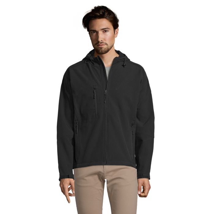 Jachetă SOL'S REPLAY pentru bărbați 340g. 2 buzunare laterale cu fermoar și 1 buzunar cu fermoar la piept. Șnur reglabil în talie. Manșete reglabile cu sistem de închidere cu autofixare. Glugă cu cordon de strângere. Detaliile materialului: 94% poliester, 6% elastan. Căptușeală din fleece: 100% poliester. 3 straturi. Membrană impermeabilă și respirabilă de 8000 mm. OEKO-TEX®. Vândut doar cu imprimare.