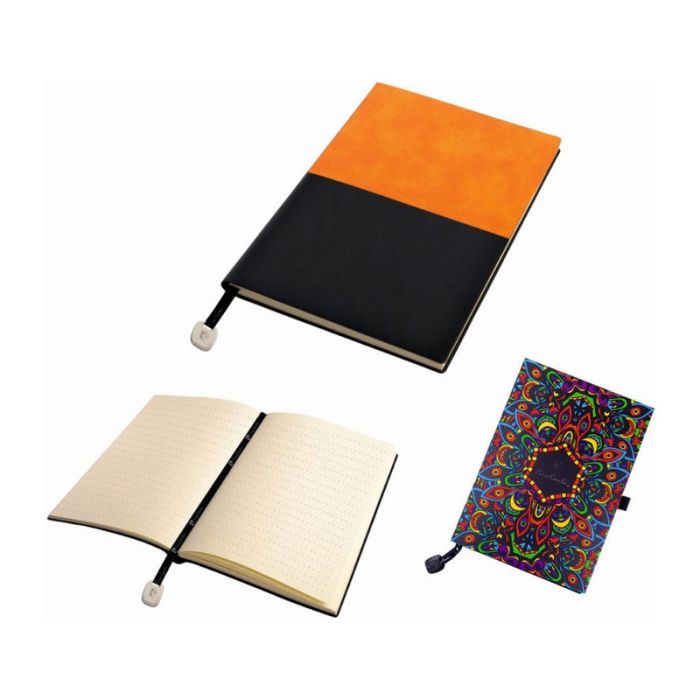 This luxurious twin-color A5 notebook is produced in man-made leather looking material. It features 160 lined pages made of quality 80 gr paper and an elegant bookmark with a metal branded charm.