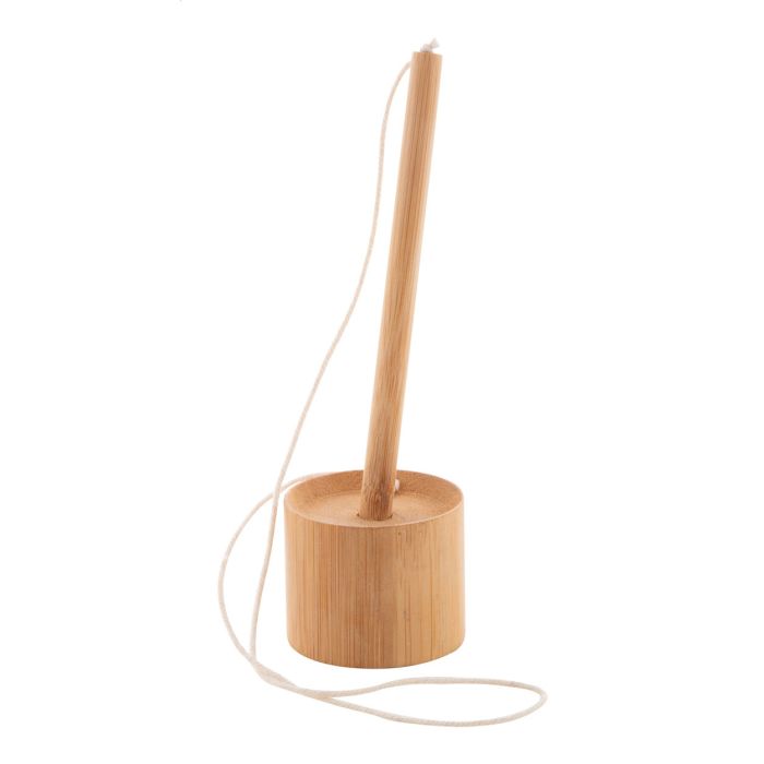 Pix din bambus pentru recepție cu suport autoadeziv. Pixul este atașat de suport cu un șnur de bumbac. Cu mină albastră.