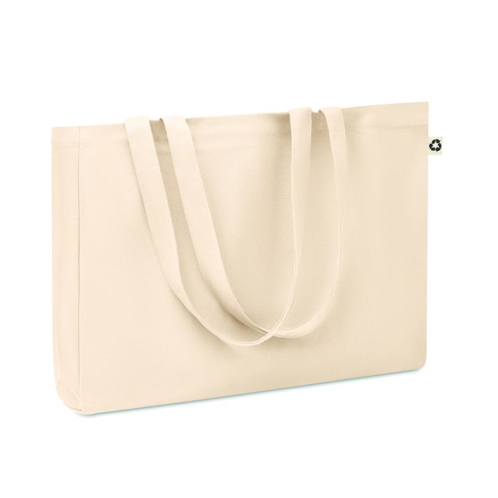 Sacosă de cumpărături din pânză reciclată sau geantă de plajă cu mânere lungi și burduf. 280 gr/m².