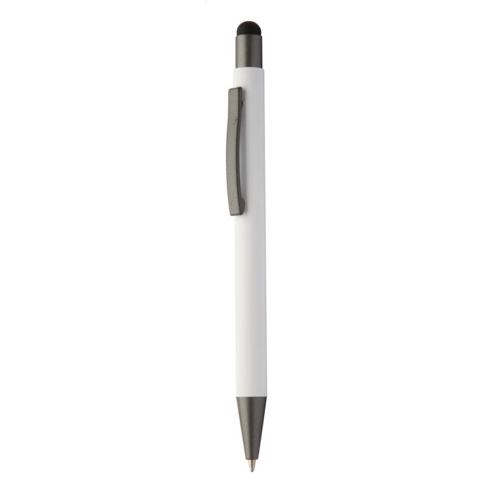 Pix din aluminiu reciclat, cu buton pentru ecran tactil, cu corp cauciucat și piese cu finisaj siliconat. Cu mină albastră.