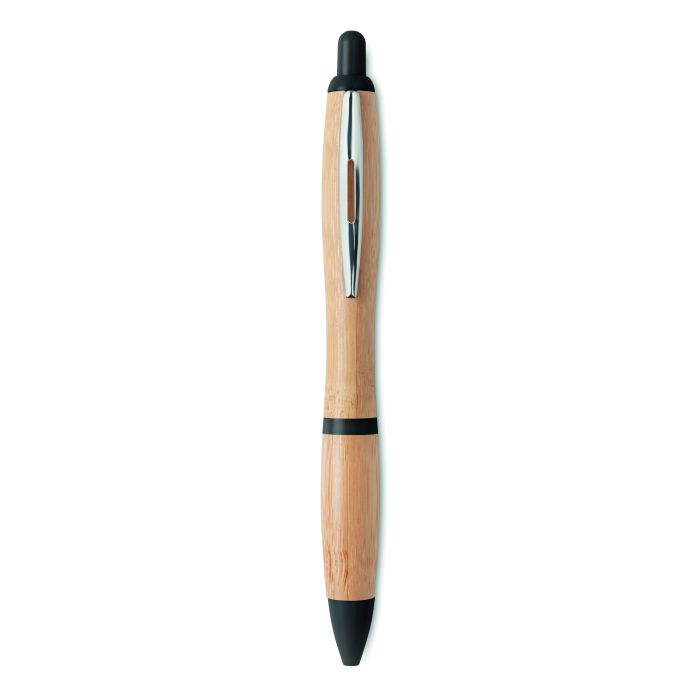 Pix cu buton, cu corp din bambus și ABS. Mină albastră. Bambusul este un produs natural, în consecință pot apărea diferențe de culoare, dimensiune sau desen.