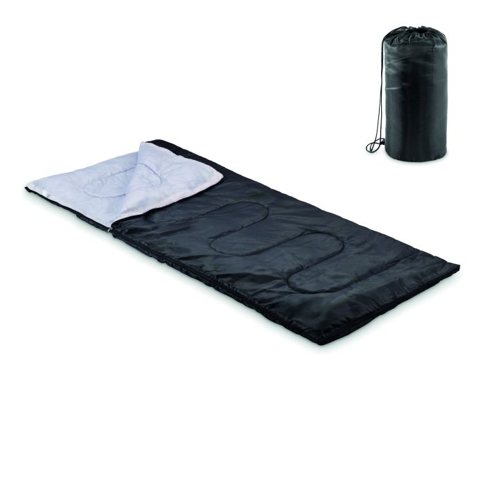 Outdoor sleeping bag in 170T polyester with PP cotton inner. Includes matching drawcord bag for easy carrying. Lightweight, durable, and ideal for camping or outdoor adventures.