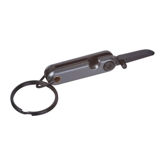 Cuțit de buzunar mini din oțel inoxidabil cu inel robust pentru chei. Compact, livrat într-o cutie mică.